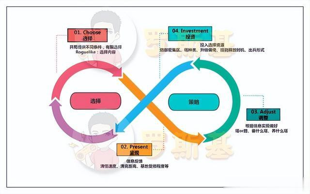 在第三环节调整阶段,基于第二环节玩家对游戏难度、当前可布置点位数量、塔作用范围及射速等系列条件,进行具体的策略选择,其中包含铺路、造塔、升级塔、开拓区域,甚至包括成型优先级等。但是,《Raid Rush》会通过Roguelike机制设计,将玩家的选择循环实现进一步放大。