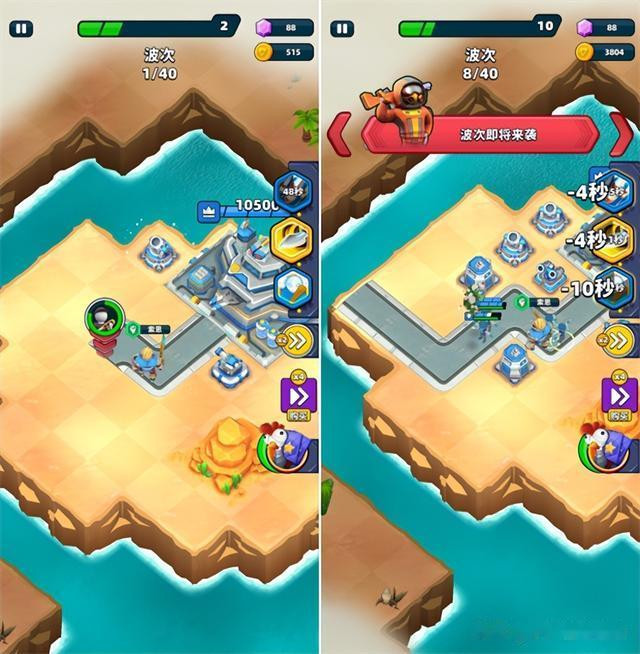 对于大多数路线规划类TD游戏,整个战斗空间往往是固定的,玩家进行路线规划的过程往往都是以S型为路线,核心玩法随着玩家不断挑战后便会失去了轻创意性培养的核心特点。《Raid Rush》通过玩家自行搭建领地区域、建造塔分布,毫无疑问形成了良好且显著的游戏差异化特点,与这些游戏的最大区别在“路线延展”概念。