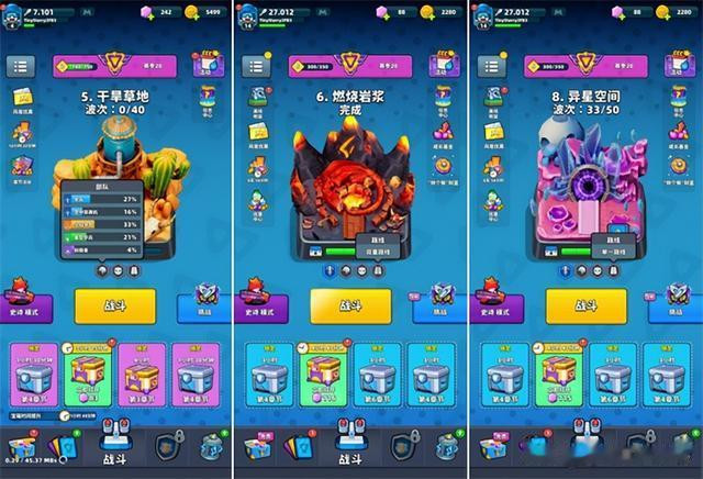 首先是塔升级,玩家在《Raid Rush》升级塔具有一个特点:玩家经验等级充分的情况下,后期通过Roguelike升级塔“不能将大量塔升级满级,甚至完全存在任何一类塔都不能到达满级”的现象,这意味着,玩家在《Raid Rush》中,对塔的等级养成具有相对强烈的要求。