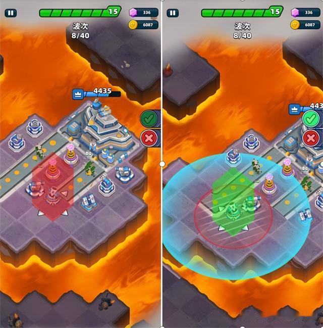 物体放置判定方面,是《Raid Rush》完成成瘾培养的关键一环。在游戏内,玩家摆放塔、路线、领地开拓等,均围绕“距离基地可摆放位置最近的空格”实现敏捷判定,让玩家可以直接通过点击,再点击确定就可以放置,摆脱新手指引时期交互链路较长的弊病。